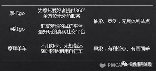 從產(chǎn)品定位來(lái)看,“一個(gè)匯聚夢(mèng)想的誠(chéng)信平臺(tái),也是最好玩的真實(shí)社交平臺(tái)”比前面那個(gè)案例的“為摩托愛(ài)好者提供360°全方位無(wú)死角服務(wù)”更虛無(wú)縹緲。因此,“一句話能說(shuō)清,一聽(tīng)就感興趣”就無(wú)從談起了。