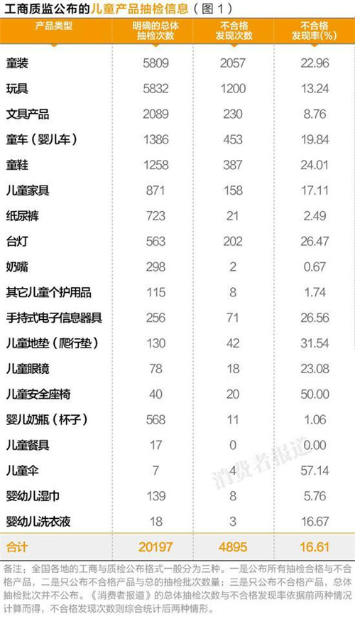 2017年5月,《消費(fèi)者報(bào)道》通過梳理全國(guó)126個(gè)工商與質(zhì)檢部門10年來公開的20197條兒童產(chǎn)品抽檢數(shù)據(jù),作出不合格品牌黑榜警示,以及重點(diǎn)不合格產(chǎn)品類型的消費(fèi)建議。