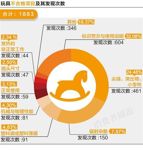 抽檢數(shù)據(jù)顯示,兒童產(chǎn)品的質(zhì)量情況不容樂觀,整體不合格發(fā)現(xiàn)率高達(dá)16.6%。童裝、玩具、文具用品、童車等一直是質(zhì)監(jiān)抽查部門重點(diǎn)監(jiān)管的對(duì)象,而童裝、童鞋、臺(tái)燈、手持式電子信息器具(如學(xué)習(xí)機(jī)、早教機(jī)等)、兒童爬行墊等類型產(chǎn)品的不合格發(fā)現(xiàn)率均超過20%。整體而言,兒童產(chǎn)品在標(biāo)識(shí)、危險(xiǎn)尖端與零件上存在更多的問題。