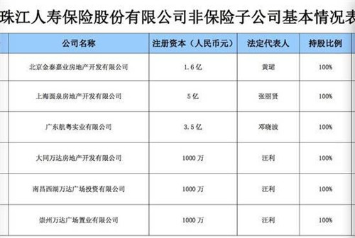 記者從珠江人壽官網(wǎng)了解到,除了買(mǎi)下南昌西湖萬(wàn)達(dá)廣場(chǎng)之外,在珠江人壽公布的“非保險(xiǎn)子公司基本情況列表”中,大同萬(wàn)達(dá)房地產(chǎn)開(kāi)發(fā)有限公司和四川崇州萬(wàn)達(dá)廣場(chǎng)置業(yè)有限公司兩處萬(wàn)達(dá)資產(chǎn),確實(shí)也在珠江人壽名下,持股比例均為100%,每家公司注冊(cè)資本均為1000萬(wàn)元。