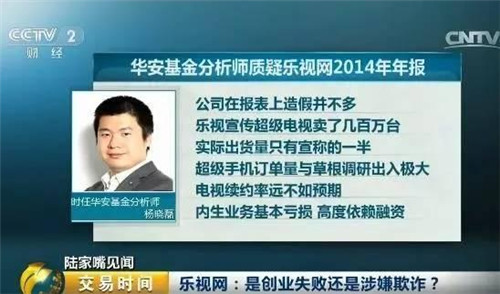 2015年6月,華安基金分析師楊曉磊公開質(zhì)疑樂(lè)視2014你年報(bào),他認(rèn)為公司在報(bào)表上的造假并不多,但據(jù)測(cè)算,樂(lè)視宣傳超級(jí)電視賣了幾百萬(wàn)臺(tái),但實(shí)際出貨量只有宣稱的一半、超級(jí)手機(jī)訂單量也與草根調(diào)研數(shù)據(jù)出入極大,電視續(xù)約率遠(yuǎn)不如預(yù)期,內(nèi)生業(yè)務(wù)基本虧損,高度依賴融資。