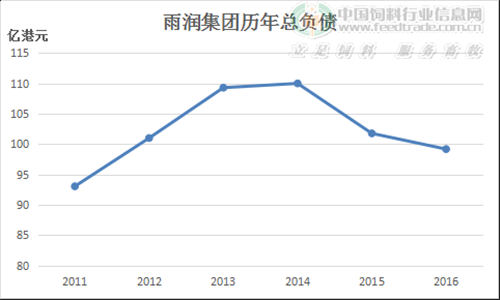 上圖顯示出了雨潤集團(tuán)自2011年開始的負(fù)債金額,營收腰斬的情況下,雨潤集團(tuán)仍然債臺高筑。
