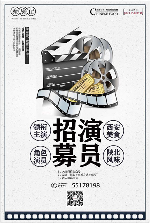 1、關(guān)注公眾號“北京中視匯影文化投資有限公司”公眾號,將“姓名+聯(lián)系方式”發(fā)送至該公眾號,附加三張照片即可。