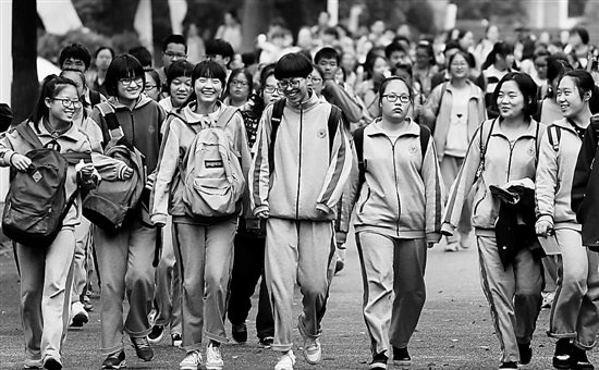 湖州中學(xué)考點(diǎn),考生面帶笑容走出考場(chǎng)。 陸偉 楊斌英 攝