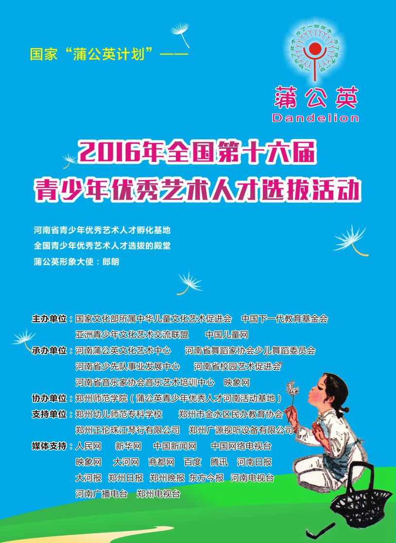 蒲公英第十六屆青少年優(yōu)秀藝術(shù)新人選拔活動(dòng)【河南選區(qū)】
