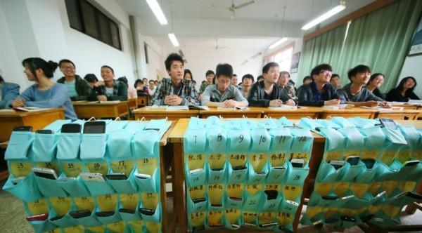 此前已經(jīng)有一些大學(xué)課堂施行“課前上交手機”,圖為洛陽理工學(xué)院的學(xué)生課前上交手機,每個手機一個“機位”。