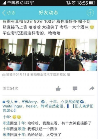 4月12日,報道了安順職業(yè)技術(shù)學(xué)院一名教師與學(xué)生在辦公室飲酒,并聲稱以喝酒多少來定考試成績之后,引起了該學(xué)院高度重視。據(jù)了解,目前,涉事教師已停職接受調(diào)查。