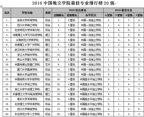 在最新2016中國各地區(qū)大學最佳專業(yè)排行榜中,北京市高校有74專業(yè)榮膺中國七星級專業(yè),蟬聯(lián)第1,上海列第2,江蘇居第3,湖北列第4,湖南居第5。在2016中國民辦大學最佳專業(yè)排行榜中,武昌首義學院、文華學院、西安外事學院、山東英才學院和西安歐亞學院名列前5強。在2016中國獨立學院最佳專業(yè)排行榜中,吉林大學珠海學院、四川大學錦江學院、北京師范大學珠海分校、河南理工大學萬方科技學院和云南師范大學商學院名列前5強。
