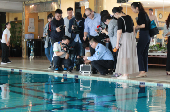 今天上午,記者跟隨相關(guān)部門將對此前檢測過的場館再次進(jìn)行突擊臨檢,11時,對鄭州索菲特再次進(jìn)行臨檢,發(fā)現(xiàn)水池中的游離性余氯值依然不合格,責(zé)令場館負(fù)責(zé)人限期整改。