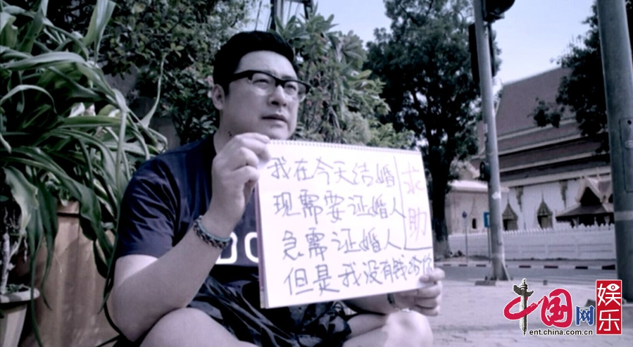 該片段中,王岳倫變身“落魄浪人”,獨(dú)自坐在老撾的馬路邊,手舉中文告示牌急求證婚人,然而車水馬龍的街頭并沒有人為他停下腳步,最終王岳倫被折磨得精神奔潰,只能對著天空大喊:“證婚人!你在哪!”