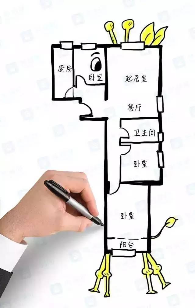 8、進(jìn)門處無法做其他改造,這一塊浪費(fèi)了,客廳窗戶朝北,采光一般。次臥和廚房靠得太近氣味較重,距離衛(wèi)生間很遠(yuǎn)不方便。