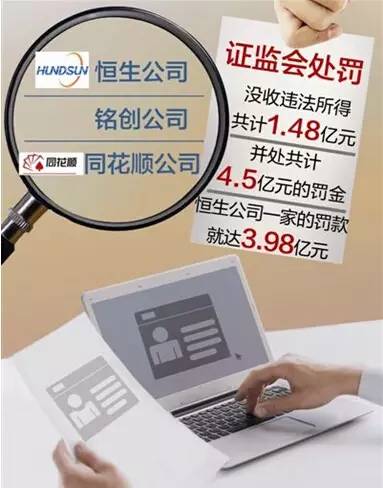 根據(jù)公告,恒生、銘創(chuàng)、同花順等3公司,因涉嫌非法經(jīng)營證券業(yè)務(wù),獲取非法收益,嚴(yán)重?cái)_亂證券市場(chǎng)秩序。證監(jiān)會(huì)依法沒收涉事3公司違法所得達(dá)1.5億元,處罰金共計(jì)近4.5億元,并對(duì)相關(guān)責(zé)任人員給予警告和罰款。消息一出,有媒體將之稱為“最狠罰單”。