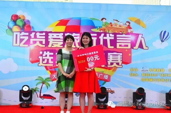 獲得第一名的選手成功簽約《吃貨愛旅行》成為代言人,由河南經(jīng)濟(jì)廣播副總監(jiān)欣悅女士上臺進(jìn)行了頒獎儀式。
