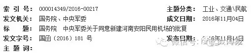 國務(wù)院 中央軍委關(guān)于同意新建河南安陽民用機場的批復(fù)
