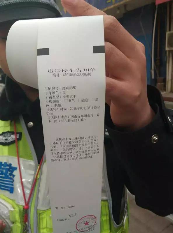 今天上午十點(diǎn),鄭州交巡警一大隊(duì)三中隊(duì)的謝民警就利用這種新型警務(wù)通對(duì)鄭州緯三路經(jīng)六路口違章停放的車輛進(jìn)行了非現(xiàn)場(chǎng)執(zhí)法,交警將駕駛員的身份信息和車輛信息輸入警務(wù)通后,核對(duì)無誤后,現(xiàn)場(chǎng)打印出違法停車告知單,而違法信息立刻就被上傳到了系統(tǒng)!