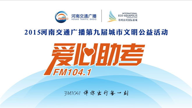 2015河南交通廣播全省“愛心送考”華美升級為 “愛心助考”,除了常規(guī)車友領取愛心助考、家有考生車貼外,領取時間和地點后期會公布,敬請鎖定FM104.1。