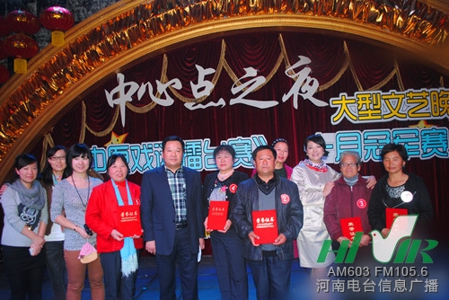 昨天晚上,河南人民廣播電臺(tái)2012中心點(diǎn)杯《中原戲迷擂臺(tái)賽》10月月冠軍賽在開封杞縣舉行。本次月冠軍賽由河南人民廣播電臺(tái)、河南省戲劇家協(xié)會(huì)、河南省戲迷協(xié)會(huì)聯(lián)合主辦,河南電臺(tái)信息廣播、杞縣中心點(diǎn)審美造型設(shè)計(jì)、河南藝之道文化傳播有限公司承辦,河南電臺(tái)經(jīng)濟(jì)廣播、農(nóng)村廣播協(xié)辦。