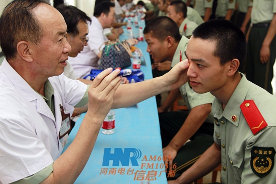 活動(dòng)中,10名河電臺信息廣播的熱心聽眾作為軍民共建的代表,跟隨醫(yī)療專家來到軍營,為武警官兵送上了10箱涼茶消暑。隨后,15名武警河南總隊(duì)醫(yī)院骨科、眼科等科室的專家為子弟兵們進(jìn)行了義診。