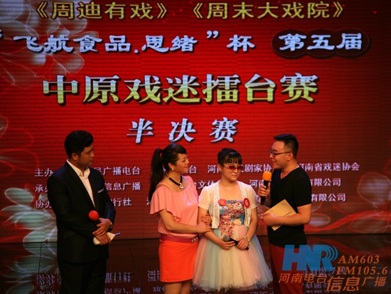 6月12日下午,《周迪有戲》“飛航食品.思緒”杯第五屆中原戲迷擂臺賽年度首場半決賽在鄭州電視臺圓滿落幕。