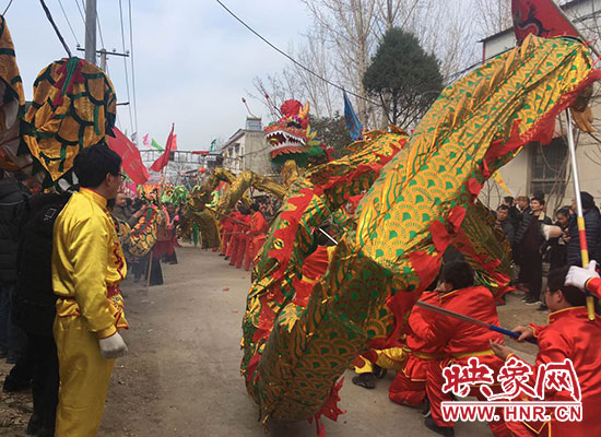 新鄭市觀音寺鎮(zhèn)太清村,新鄭、長葛、禹州的三縣交界處。3月3日下午15時(shí)許,太清村的街上人山人海,水泄不通。各條街道上鑼鼓喧天,熱鬧非凡。多個(gè)舞獅團(tuán)隊(duì)開始在高高樹起的架子上表演,地面上各種各樣的民間表演爭奇斗艷。