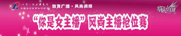 2011年12月16日,黃河科技學(xué)院,能容納1000多人的音樂(lè)廳座無(wú)虛席,由河南人民廣播電臺(tái)、河南省學(xué)生聯(lián)合會(huì)主辦、教育廣播承辦的“你是女主播大賽·風(fēng)尚主播搶位賽”決賽正在如火如荼地舉行。從全省40多所高校、5000多名報(bào)名者中脫穎而出的12位晉級(jí)選手各展絕技,你方唱罷我登場(chǎng),在經(jīng)過(guò)了“聽(tīng)我微節(jié)目”(100秒微節(jié)目展示);“臨危不懼”(危機(jī)主持、現(xiàn)場(chǎng)采訪教育廣播風(fēng)尚調(diào)頻女主播)及“真我風(fēng)采”(個(gè)人才藝展示)三輪激烈角逐后,最終鎖定一、二、三等獎(jiǎng),而三個(gè)多小時(shí)的巔峰對(duì)決,也為現(xiàn)場(chǎng)的觀眾和收音機(jī)前的聽(tīng)眾呈現(xiàn)了一場(chǎng)精彩的視聽(tīng)盛宴。