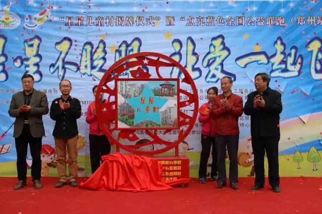 省殘聯(lián)原副理事長王永章、河南電臺農(nóng)村廣播綠色頻道FM1074副總監(jiān)寒江,省殘疾人康復教育研究中心原主任陳殿奇、張定邦村委黨支部書記兼村委主任張?zhí)駷槲挥趶埗◣痛宓摹靶切莾和濉边M行了揭牌儀式,這也是全國首個“星星兒童村”。