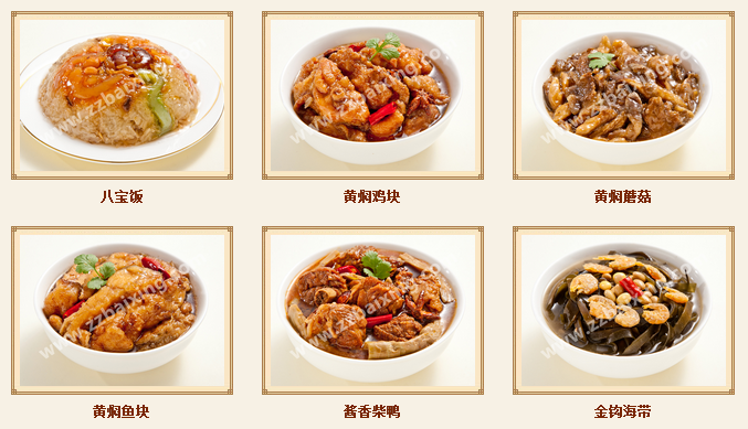 扣碗系列產品有黃燜雞塊、黃燜魚塊、牛肉小酥肉、八寶飯、粒粒香芋丸子等多種口味;花樣饅頭系列產品有佛手、玉兔、元寶、錦魚、壽桃等精品外觀造型,特選加拿大麥芯面粉精良制作。