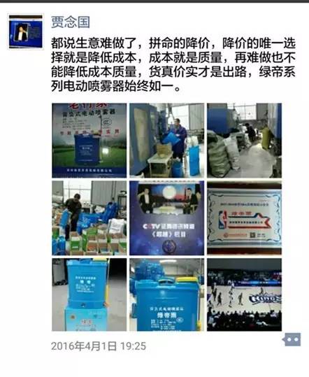 任何一名企業(yè)家,都有困惑的時(shí)候。開(kāi)始的時(shí)候,生產(chǎn)電動(dòng)噴霧器的公司也就只有他這一家,如今在河南省內(nèi)達(dá)到了100多家,全國(guó)的生產(chǎn)廠家有1000多家,賈總覺(jué)得目前市場(chǎng)競(jìng)爭(zhēng)是比較激烈的,仿造的甚至是假冒的產(chǎn)品還時(shí)有出現(xiàn);產(chǎn)品的利潤(rùn)也沒(méi)有以前高了;隨著原材料及工人工資等成本的增加,批發(fā)價(jià)格也有所調(diào)高;這一點(diǎn),有時(shí)在賈總的微信里也看出了一些無(wú)奈和感慨。