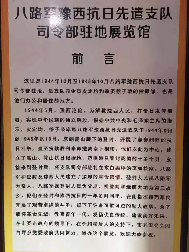 1944年10月1日,以皮定均為司令員,徐子榮為政委的豫西抗日先遣支隊進駐登封白栗坪。翌日,駐登封日軍200多人對白栗坪抗日根據(jù)地進行第一次大掃蕩,殺駐地百姓3人。7日,駐登封日、偽軍300多人對白栗坪抗日根據(jù)地進行第二次掃蕩。13日,駐登封日、偽軍200多人對白栗坪抗日根據(jù)地進行第三次掃蕩。23日,駐登封日、偽、頑300多人對白栗坪抗日根據(jù)地進行第四次掃蕩,皮定均率部突圍。28日,駐登封日軍百余人、偽軍200多人對白栗坪抗日根據(jù)地進行第五次掃蕩。