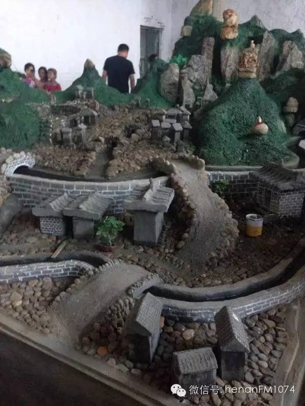 為紀念抗戰(zhàn)勝利70周年,54歲的南豐村村民張江生帶領其他村民自己出錢出力親手制作微景觀,3米五寬,6米長,再現(xiàn)南豐村抗戰(zhàn)時期的原貌。