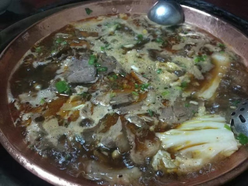 銅瓢牛肉也是不可錯過的美味,超大的銅瓢盛著滿鍋的帶皮牛肉和牛雜,蘸小米椒腐乳調(diào)料吃超過癮。最受食客歡迎的還要數(shù)瓢里煮得香香辣辣糯糯軟軟的牛舌牛筋牛皮,直可以把人吃得眼皮出汗。