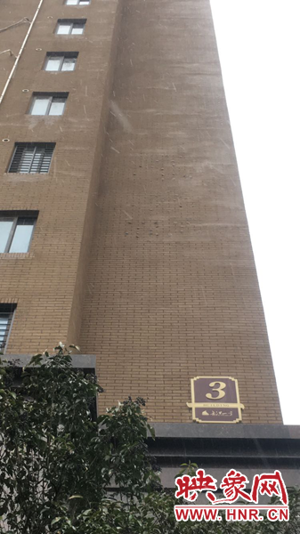 映象網(wǎng)訊 (記者 柴可 文/圖)鄭州長江一號K區(qū)剛交付幾個月,樓房外墻就出現(xiàn)大面積空鼓,并有墻面脫落,幾年來愈演愈烈。
