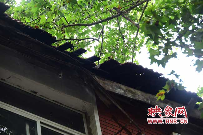在三樓,河南省第一建筑工程集團(tuán)有限責(zé)任公司物業(yè)管理分公司兩位工作人員稱,房頂不安全,他們?cè)缭趦蓚€(gè)月前向上級(jí)部門(mén)打了報(bào)告。