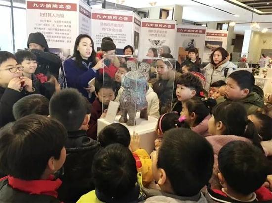 河南博物院講解員為小朋友們講解國(guó)寶“婦好鸮尊”