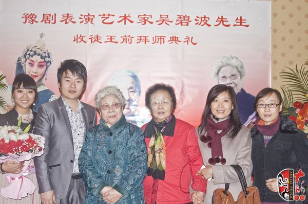 11月19,著名的豫劇表演藝術(shù)家、陳派掌門大弟子吳碧波先生喜收新徒。省豫劇二團(tuán)青年演員王前正式拜吳碧波先生為師。收徒儀式樸素而溫馨,曲劇名家王秀玲、豫劇名家軒玉亭、陳派名家郭美金、武惠敏、陳素真五子王闿聰?shù)惹皝?lái)捧場(chǎng)。