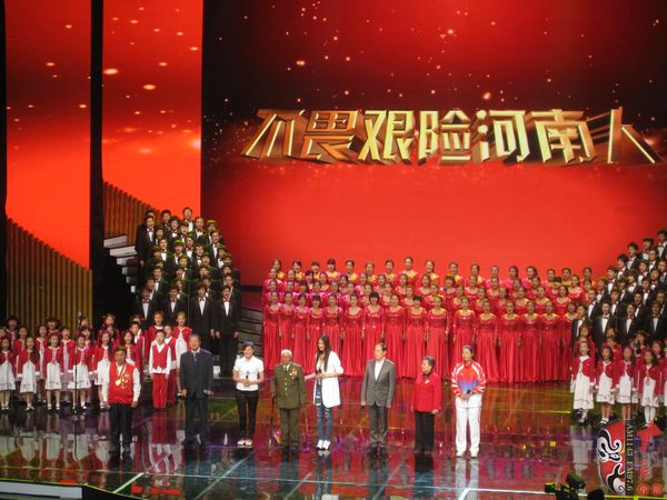 5月29日晚,在河南藝術(shù)中心現(xiàn)場直播的“河南電視臺《梨園春》特別節(jié)目——我是河南人”專場晚會,沸騰了現(xiàn)場的2000名觀眾,震撼了電視機前的億萬觀眾。用歌聲、用唱腔,唱出了“大寫”的河南人形象。第九屆、十屆全國政協(xié)副主席、河南中華豫劇文化促進會名譽會長張思卿觀看了演出并給予高度評價。 省領(lǐng)導(dǎo)盧展工、郭庚茂、李克、孔玉芳、鄧凱、劉春良、劉懷廉、連維良、尹晉華、曹維新、劉新民、張程鋒、蔣篤運、史濟春、徐濟超、陳雪楓、趙建才、王訓(xùn)智、龔立群、梁靜、高體健,全國政協(xié)教科文衛(wèi)體委員會副主任王全書等出席了晚會。 整臺晚會分為數(shù)個篇章,其中的“人民公仆贊”里,從《焦裕祿》的“百姓歌”,唱到《村官李天成》的吃虧歌;在“永遠的豐碑——紅旗渠”中,紅旗渠特等勞模任羊成、張買江、郭秋英的到來,帶大家回到了那段崢嶸歲月…… 最讓大家感動的是馬金鳳、王立群、李文祥、李靈、胡葆森、馬艷麗、李高峰、孫甜甜8位優(yōu)秀河南人代表朗誦的“河南人”,把作為一名河南人的驕傲和自豪,傳遞給在場的每一位觀眾。而欄目組奔赴全國各地,采訪數(shù)十位河南籍名人的片段,更是引起現(xiàn)場觀眾的強烈共鳴,這個夜晚,“作為河南人的自豪”充盈在了每一個觀眾的掌聲里,“對于河南人的感動”融合在了每一個觀眾的笑臉上?!斑@是一臺我看了感觸最多的晚會,很長時間都沒有看過這樣精彩的戲了?!蓖頃Y(jié)束后,主要領(lǐng)導(dǎo)上臺和演職人員握手并合影留言。第九屆、十屆全國政協(xié)副主席、河南中華豫劇文化促進會名譽會長張思卿對于整臺晚會的評價,讓演職人員都沸騰了起來,鼓掌聲和叫好聲響成一片?!?“首先我跟大家說,我是河南人!是洛陽人!”張思卿這句話一說完,在場的河南人集體鼓起掌來?!敖酉聛砦艺f三句話,第一句是,這是一臺非常精彩的演出!”(掌聲雷動)張思卿接著說,第二句是,這臺晚會所演的、所唱的,都是“正氣歌”。(掌聲繼續(xù))第三句是,大家所概括的河南人的精神,也是一種革命的精神,從干部來講,反映出的是“百姓大于天”;從普通人來說,只有通過艱苦奮斗和不懈的努力,才能夠取得良好的成績,“概括起來就是,我們有了這種革命的精神,就能夠戰(zhàn)勝一切”!看到張思卿對“河南人精神”評價如此之高,大家都沸騰起來。