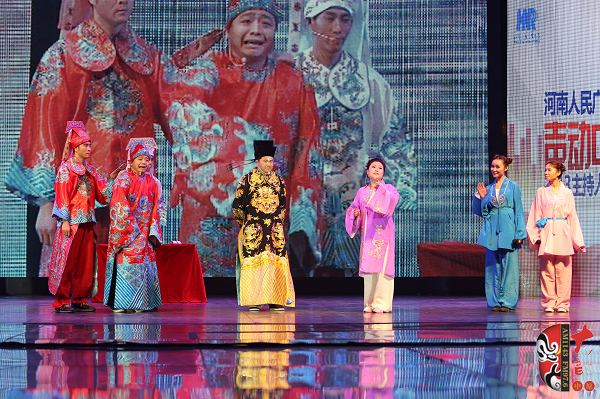 主持人月陽(yáng)和他的女兒、剛剛榮獲第十屆河南省少兒戲曲小梅花大賽“小狀元”、《梨園春》明星小擂主張楚怡聯(lián)合表演了《花打朝》選段,楚怡人小本領(lǐng)大,小小年紀(jì)的她唱起《花打朝》有模有樣,引來掌聲和笑聲一片;由戲曲廣播主持人丁蘭、李鋮、小胖、媛媛、一凡、趙坤、李鑫、張琳、高興、文博等表演的戲曲小品《新鍘美案》,集穿越、荒誕、娛樂為一體,成為晚會(huì)最火爆的節(jié)目,現(xiàn)場(chǎng)喝彩聲、掌聲不絕于耳,令人回味無(wú)窮;由本次主持人見面會(huì)導(dǎo)演、戲曲廣播總監(jiān)木子和主持人池城聯(lián)袂演唱的豫劇《必正與妙?!贰疤焐先碎g共團(tuán)圓”選段,表演優(yōu)雅、浪漫,唱腔極具專業(yè)水準(zhǔn),把觀眾帶到了濃濃的中秋月夜美好意境之中。