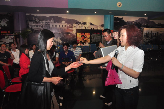 2010年5月8日上午10點(diǎn),河南電臺(tái)旅游廣播FM99.9《故事大秀場》聽友觀影團(tuán),在鄭州百盛6樓的鄭州橫店影視電影城如期舉行。美女主持小佩、菲楊聯(lián)袂登場,與聽眾朋友精彩互動(dòng),現(xiàn)場有獎(jiǎng)問答,鄭州橫店影視電影城也送出了各種精美禮品!互動(dòng)期間來自安陽的聽眾非常的幸運(yùn),獲得了本次活動(dòng)的大獎(jiǎng),一等獎(jiǎng):精美的純銀情侶對(duì)戒;還有2張價(jià)值45元的橫店影城貴賓券!大家?guī)е约旱亩Y物和歡聲笑語,與小佩、菲楊一起在位于鄭州百盛廣場六樓的橫店影城電影城觀看了催淚大片《歲月神偷》,這部影片感動(dòng)了在場的每一位觀眾?;顒?dòng)最后,每位到場的幸運(yùn)聽眾還獲得了鄭州橫店影視電影城贈(zèng)送的寶龍新店“20元現(xiàn)金券”!參與活動(dòng)的所有聽眾都收獲豐厚,真的是滿載而歸呀!在此特別感謝鄭州橫店影視城對(duì)本次活動(dòng)的大力支持!故事大秀場我秀我飛揚(yáng)~~~