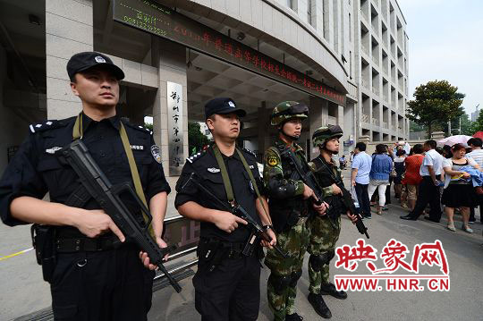 鄭州警方根據(jù)全市考區(qū)的實(shí)際情況進(jìn)行了警力部署:市內(nèi)每個(gè)考點(diǎn)安排轄區(qū)派出所民警6名、交巡警6名、特警4名;上街、中牟、滎陽、新鄭、新密、登封每個(gè)考點(diǎn)安排執(zhí)勤民警16名,其中:派出所民警6名、交警6名、特警4名。為全力服務(wù)考生,鄭州警方要求各單位執(zhí)勤民警在開考前1個(gè)小時(shí)到達(dá)指定崗位,認(rèn)真履行各項(xiàng)職責(zé),考試結(jié)束40分鐘后撤崗。對(duì)位于繁華路段、周邊治安復(fù)雜或交通擁堵路段的學(xué)校有針對(duì)性的增派警力,切實(shí)加強(qiáng)考點(diǎn)及周邊安全保衛(wèi)工作。