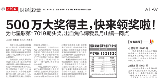 [摘要] 2017年4月20日,河南省體彩中心工作人員癡癡等到最后,焦作500萬元七星彩大獎(jiǎng)仍無人領(lǐng),這注大獎(jiǎng)遺憾成為棄獎(jiǎng),獎(jiǎng)金全部納入彩票公益金。