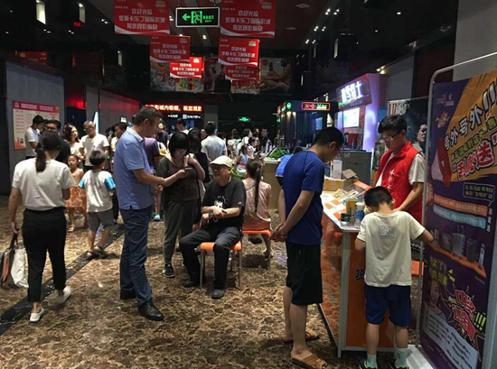 7月底,《戰(zhàn)狼2》一經(jīng)放映,票房即屢創(chuàng)新高,人們都紛紛到電影院觀賞這部精彩的電影。經(jīng)常在鄭州西郊電影院看電影的人們,會(huì)發(fā)現(xiàn)很多電影院入口處多了一個(gè)新柜臺(tái),體彩“頂呱刮”銷售專用柜臺(tái)。銷售桌醒目的顏色、展柜內(nèi)齊全的票種、各色禮品吸引了人們的目光。等待入場(chǎng)的人們紛紛來到銷售桌周圍,了解頂呱刮的玩法,并開始在“頂呱刮”票種里尋寶。