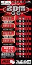 “20倍現(xiàn)金”單張彩票共有20次中獎機會,最高獎金100萬元。票面共有五組游戲,簡單易玩、新鮮刺激。其中,主游戲為:刮開覆蓋膜,在任意一場游戲中,如果你的號碼與中獎號碼相同,即中得該場游戲右方所示的金額;如果在任意一場游戲中,出現(xiàn)倍數(shù)標(biāo)志“2X,3X,5X,10X或20X”,即中得該場游戲右方所示金額乘以該場游戲所出現(xiàn)的倍數(shù)。其它四場幸運游戲分別為:在幸運游戲區(qū)刮開覆蓋膜,如果出現(xiàn)兩個相同的標(biāo)志,分別可中得50元、100元、200元和500元。所有游戲中獎獎金兼中兼得。