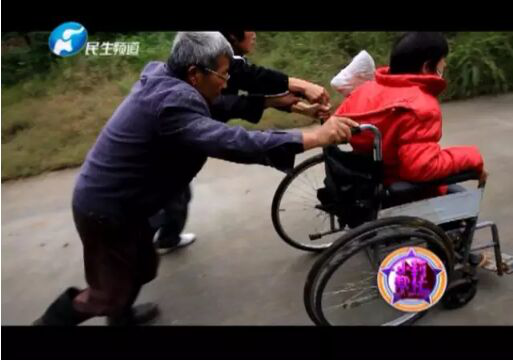[摘要] 每周的兩三天時(shí)間里,一段頗不好走的山路上,總會(huì)出現(xiàn)這樣一家人的身影,坐在輪椅上的是女兒愛(ài)平,年僅42歲的她患尿毒癥已有十多年。