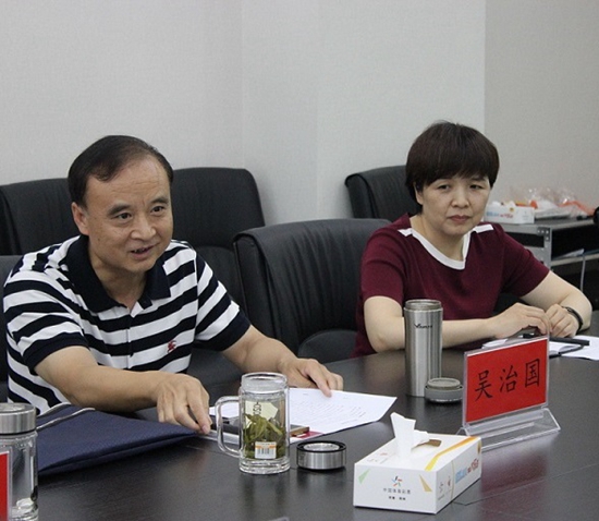 河南省體育局巡視員、黨組成員吳治國(左)和省體彩中心書記王海新(右)在分中心調(diào)研