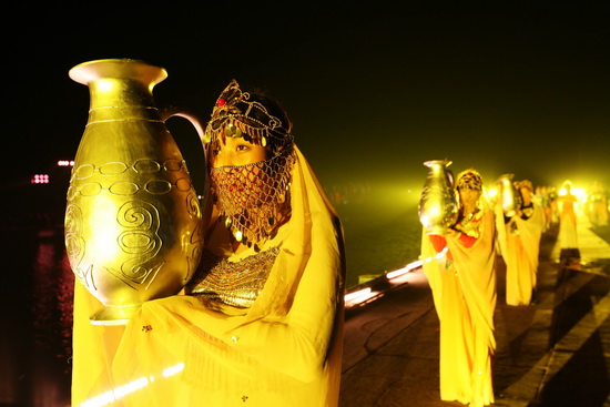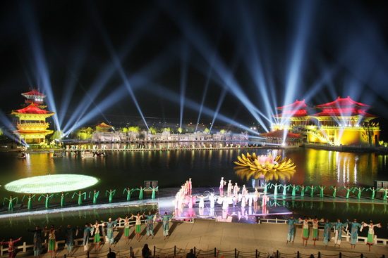 整個(gè)演出運(yùn)用大量的科技手段,制造出夢(mèng)幻的效果,把人們的記憶拉向一千多年前的那個(gè)輝煌朝代。
