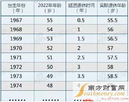 以55歲退休為標(biāo)準(zhǔn),假定每年延長(zhǎng)退休時(shí)間為6個(gè)月,自方案實(shí)施起,逐年累計(jì)遞增,直到達(dá)到新擬定的退休年齡。