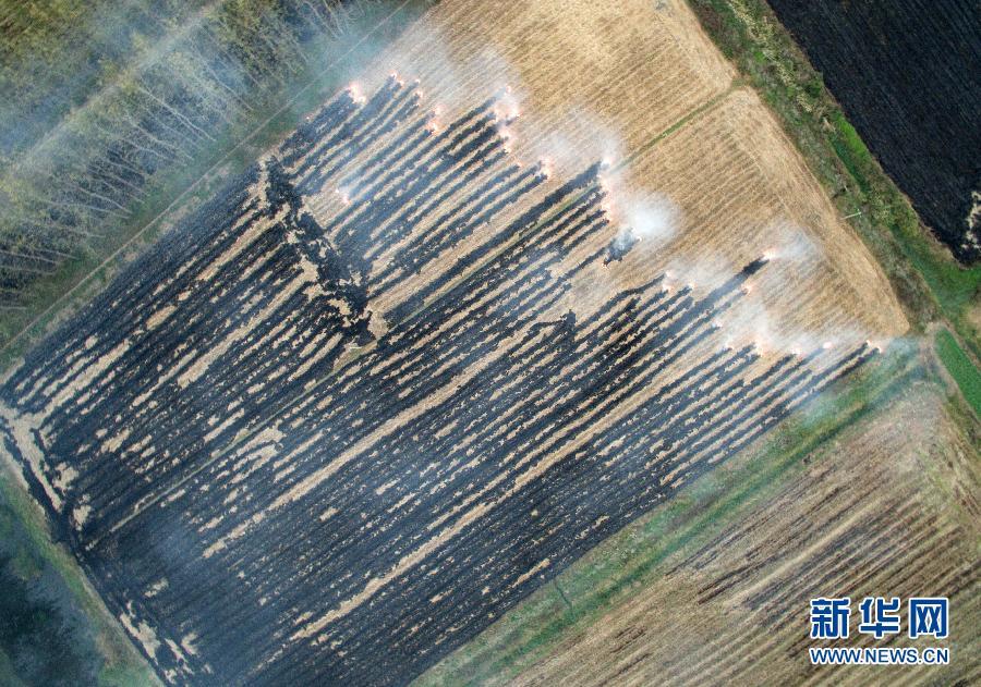 這是用無人機(jī)拍攝的湖北省潛江市一處秸稈焚燒火點(diǎn)(10月21日攝)。