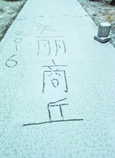 商丘下雪了,有市民把它記在車(chē)窗上。記者陳海峰攝