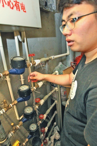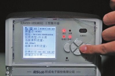 10時49分,在33樓的電井房內,操作員正在調試集中器。記者看到,集中器的電子屏顯示最近一次抄表內容為:10時47分,冷水表,當前流量46立方米。