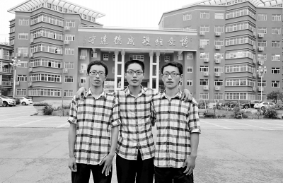 本報(bào)南陽訊南陽有一家三胞胎參加了今年高考,全過了一本分?jǐn)?shù)線,喜壞了父母,也轟動(dòng)了南陽。昨日記者采訪時(shí),身著同樣的花格子上衣、黑褲子,同樣戴著眼鏡的三兄弟正在與老師商量著填報(bào)志愿,三個(gè)人的臉上一直掛著微笑。